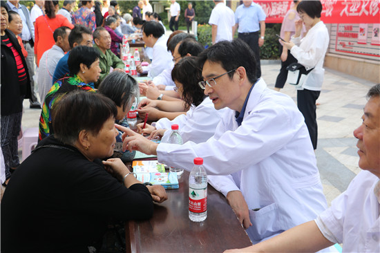 专家团队首先来到西部新区天悦龙廷小区开展大型义诊活动,对前来咨询的老百姓进行健康体检、咨询,免费为他们测血压、血糖,免费发放药品。据统计,本次义诊提供健康咨询和现场查体、测血压、血糖共计300余人,发放健康教育资料400余份。