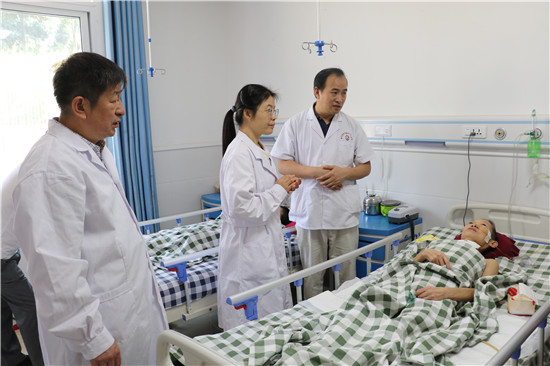 随后,全体成员来到朱衣镇中心卫生院(县人民医院朱衣分院),为这里住院的患者开展教学查房,让患者享受到大型三甲医院的优质医疗服务,同时让基层医务工作者近距离的接受到了专家们的精心业务指导。