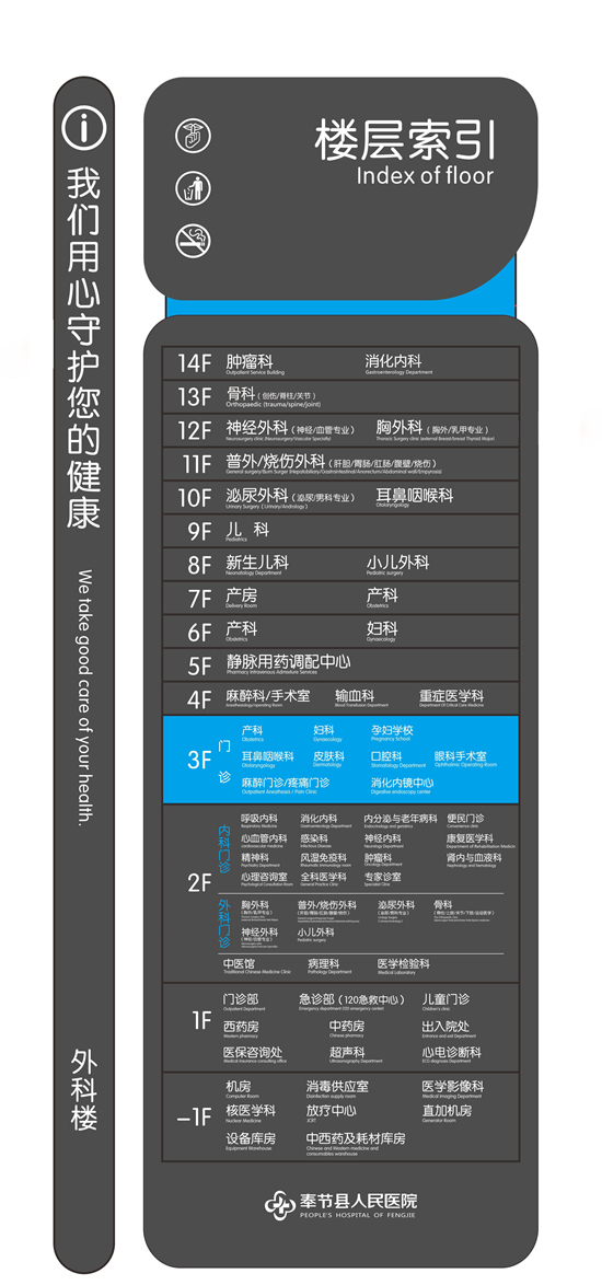 新院区现场设置导诊分诊服务,其建筑功能布局、就诊科室及楼层分布等信息附后。
