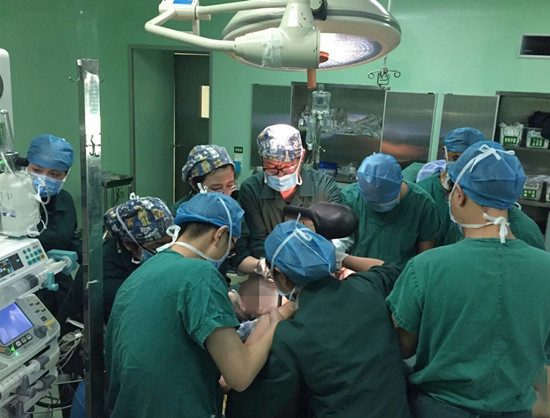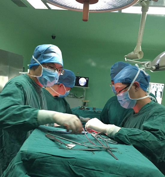 由于脊柱肿瘤手术风险高,出血多,容易瘫痪,如果采用传统手术方式无法完整切除肿瘤,术后容易复发。目前国内外最为推荐的手术方式为全脊椎整体切除,该手术方式的优点在于肿瘤切除彻底,复发可能性更小,但目前国内仅有部分教学医院开展该技术。我院骨科团队在陈伟主任的带领下反复讨论研究病情,同时在麻醉科、放射介入科、输血科、ICU等多科室协作下,经充分的术前准备后,决定采用目前国内外最为推荐的手术方式即全脊椎整体切除。