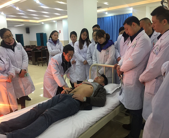 进行完教学查房后,杨主任又对该中心的全部医师进行了体格检查的培训。在培训中,杨主任强调:在检查中要注意保护病人隐私,冬天要注意给病人保暖等,体现了一个医师良好的道德修养和人文关怀。