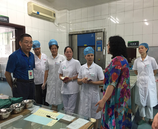 首先赵主任实地查看了供应室建筑布局、工作流程,询问了医院编制床位以及实际病员量,然后了解了医院组织管理体系、供应室人力资源等;对于供应室护士长管理亮点给于了高度肯定,同时对科室的发展提出了更高的要求。