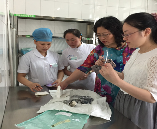 为规范消毒供应行业标准,提高供应室科学管理水平, 7月5日,重医附二院消毒供应中心主任赵筠不辞辛劳一早赶来我院供应室,毫无保留地为我科传经送宝,助推我院三甲创建工作。