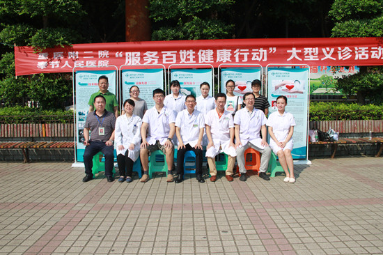 9月13日,重医附二院与我院在奉节县地王广场举行“2017服务百姓健康行动”大型联合义诊,涉及心血管、呼吸、神经、妇产、骨科、泌尿等专业,其中,附二院派出了董江川、何帆、李锐冬三位博士,我院由李宾、丁春兰、肖天兵三位资深主任参加。据统计,本次义诊提供健康咨询和现场查体、测血压、血糖共计250余人,发放健康教育资料300余份。
