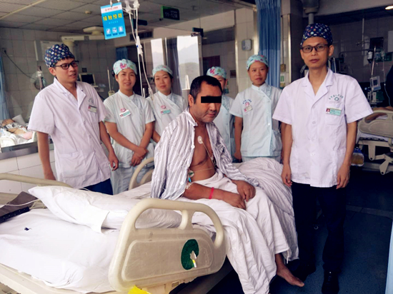 面对来势汹汹的病魔和脆弱的生命,抢救团队当即行经口气管插管,过床以后,医务人员各就各位,予以急查血气、心电监护、吸痰、开通静脉、使用呼吸机机械通气。“付老师,病人心跳停止。”护士一边呼喊医生,一边立即行胸外心脏按压。“快,再开通两个静脉通道,静推肾上腺素、滴入林格、泵入多巴胺、去甲肾上腺素等药物……”在紧张的气氛中,急救工作有条不紊的开展着。