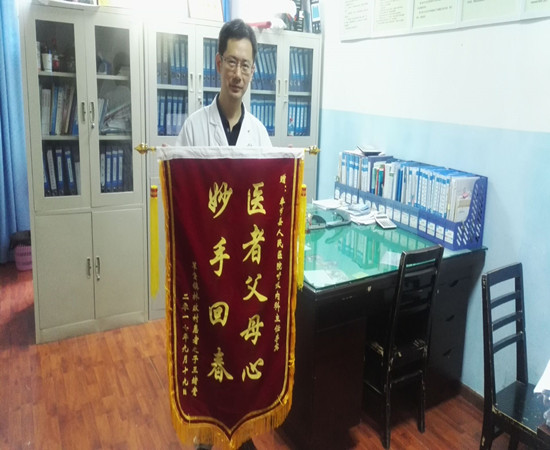 王老伯是“健康扶贫”政策的扶贫对象,开始的时候是由呼吸内科主任李宾负责对接、随访,李宾主任不仅对王老伯的病情有详细的了解,还对王老伯的生活嘘寒问暖,待王老伯犹如自己的亲人。后来,扶贫对象从新调配后,王老伯属于另一个医生的扶贫对象,但是,王老伯已经把李宾主任当成了亲人,有问题仍然会请教李宾主任,李宾主任没有因为王老伯不是自己的扶贫对象而推脱,仍然细心解答他的疑问,在王老伯来医院就诊时,全程陪同王老伯就诊、检查,细心照顾王老伯。李宾主任的高尚医德、精心服务令患者及其家属感激涕淋。为此,患者及亲属制作一面绣有“妙手回春,医者父母心”锦旗送给李宾主任,以表心意。