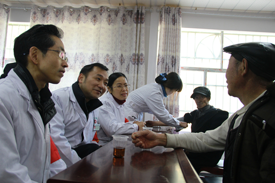 “感谢医护人员下乡来给我们宣讲政策、看病送药,我今天量了血压、测了血糖,除了感谢我都不晓得说什么了。”村民王大爷说到。