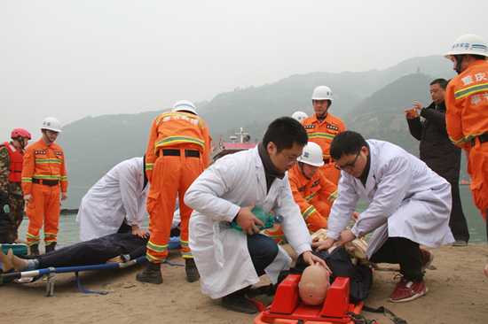 县人民医院于2017年7月成立水上应急队伍,成员包括急诊科、眼科、骨科、呼吸内科、泌尿外科等多个专业医护人员组成。下午2点30,接到救援电话后,我院立即启动应急预案并集结水上救援队伍,2辆救护车、8名医护人员火速赶到事故现场设置医疗临时救治点,积极开展溺水伤员的救治及转运工作。