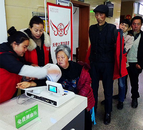 近日,县人民医院购进RBP-9001脉搏波医用血压计,在综合门诊免费为市民测血压、血糖,是县人民医院为前来市民准备的福利。至开展以来每天免费测血压500多人次。