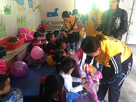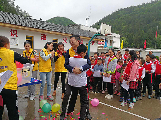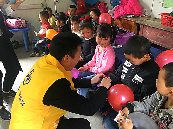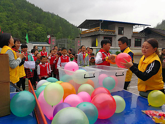 挤气球和你说我猜游戏中,青年团员与同学们共同完成,让同学们体会到团队合作的力量,一场场有趣的游戏,使孩子们欢天喜地。随后,还为同学们捐赠教学用品,书包,文具,运动器材等物品,令同学们喜笑颜开。