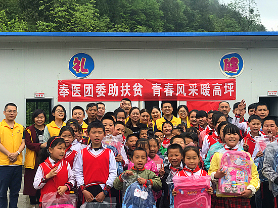 今天是五四青年节,奉节县人民医院机关支部带领青年团员一行来到扶贫挂点村,兴隆镇高坪村小开展“奉医团委助扶贫 青春风采暖高坪”活动。为65名师生送上教学用品和节日祝福。