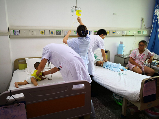 随着6月持续高温加暴雨,感染性疾病手足口病患儿数量迅速攀升,在奉节县人民医院感染科,患儿住院量从50人迅速激增到80余人,连日来人数一直居高不下。