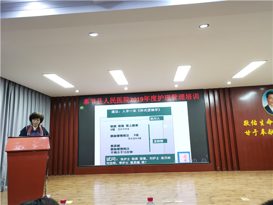 为进一步提高护理人员的医疗安全意识,增强医患沟通能力,掌握医患沟通技巧,减少医患矛盾,防范医疗纠纷,并使医务人员懂得运用法律知识维护自己的合法权益,2019年5月16日,我院举办了2019年度第一次护理管理培训,特邀著名医事律师李惠娟做了题为《护理安全管理与风险干预--案例分析》的专题授课。